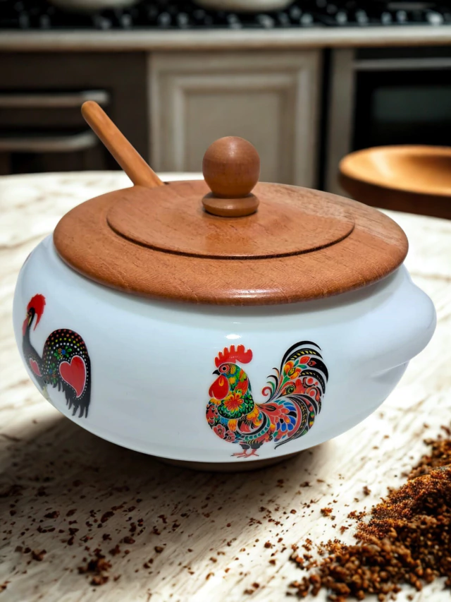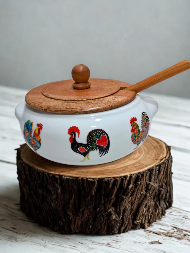 Esta Farinheira de Porcelana com Tampa e Colher de Madeira é perfeita para servir farinha ou molhos com estilo e praticidade. Adicione um toque de sofisticação à sua cozinha e mantenha seus ingredientes essenciais organizados de forma elegante.
