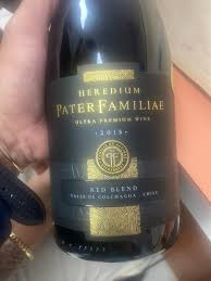 Vinho Heredium Pater Familiae Red Blend é um vinho tinto chileno seco, produzido a partir de uma mistura (blend) de diferentes uvas tintas. Ele é conhecido por ser um vinho encorpado, com taninos presentes e boa acidez.